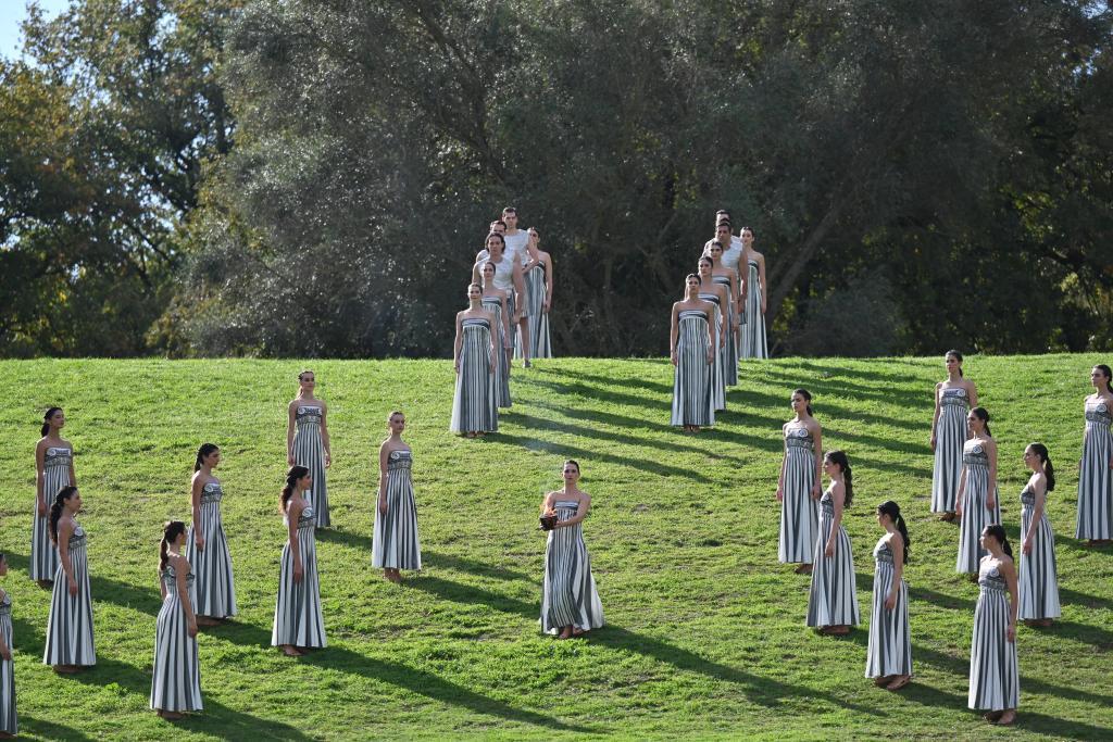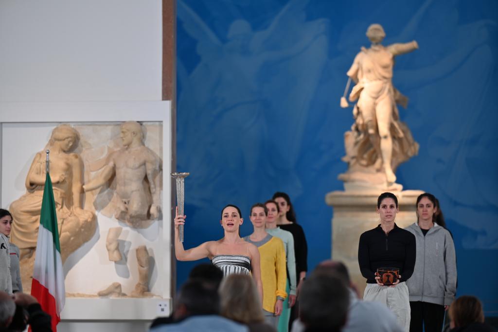↑11月24日,演員在圣火火種采集儀式彩排中表演。新華社記者 呂優 攝