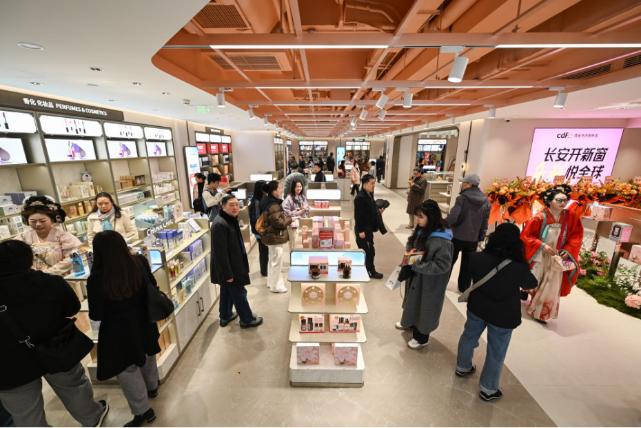 11月26日,顧客在西安市內免稅店有稅商品區選購商品。新華社記者 鄒競一 攝