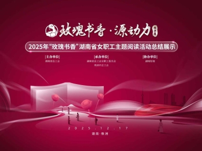 直播回顧|2025年“玫瑰書香”湖南省女職工主題閱讀活動總結展示??????為深入學習貫徹黨的二十屆四中全會精神,貫徹落實全總“559”工作部署和湖南省總“五強五高”工作目標,進一步加強湖南省女職工思想政治引領、促進女職工素質提升、持續推進家庭文明建設,湖南省總工會于12月17日在湖南株洲舉辦2025年“玫瑰書香”湖南省女職工主題閱讀總結展示活動。活動用展演、誦讀等節目形式,展示閱讀之光照亮女性一線產業工人、工程師和巾幗勞模工匠等女職工夢想的故事,以此褒揚先進、謳歌時代、引領風尚。12月17日10:30,中工網首頁、微博、視頻號同步播出。