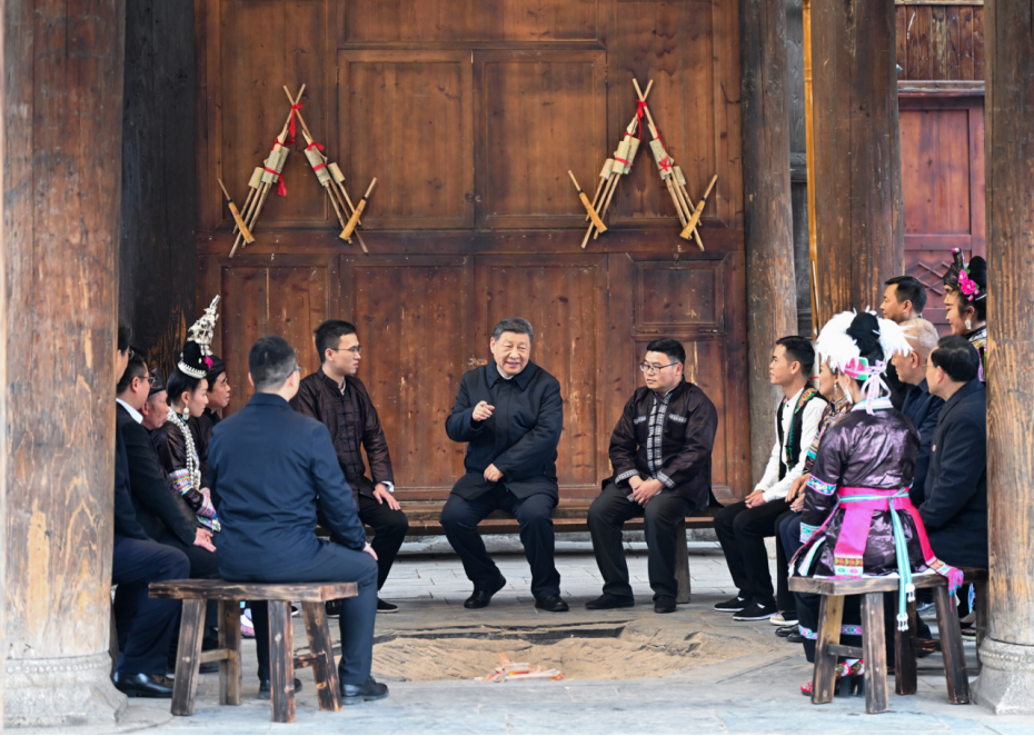 2025年3月17日下午,習近平總書記在貴州黔東南州黎平縣肇興侗寨考察時,在信團鼓樓同村干部和村民代表圍坐在火塘邊,共話鄉村全面振興。