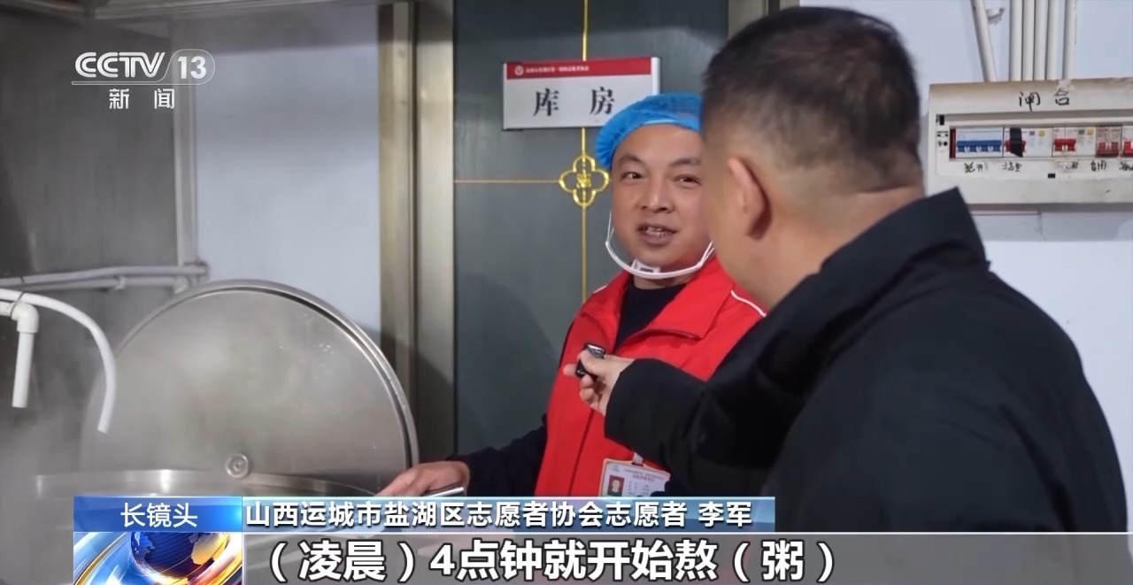 運(yùn)城市鹽湖區(qū)志愿者協(xié)會志愿者 李軍:每天我們都是凌晨4點(diǎn)鐘就開始熬粥,然后6點(diǎn)鐘出鍋。熬得時(shí)間長就香一點(diǎn),讓環(huán)衛(wèi)工都吃舒服一點(diǎn)。