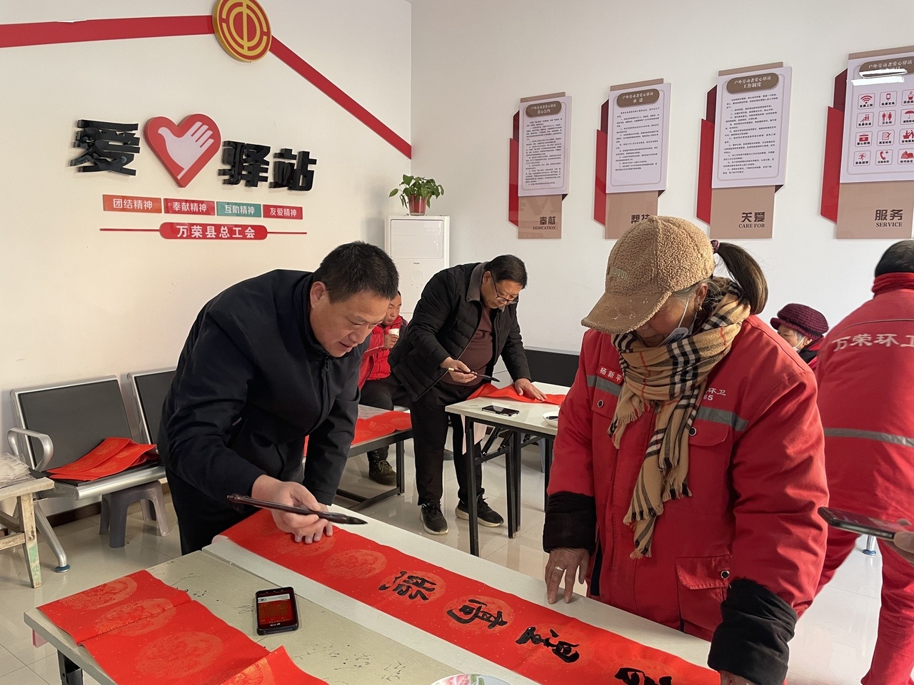 在“工會服務戶外勞動者日”到來之際,山西省各級工會干部深入工會驛站,持續延伸服務觸角,提升服務質量,優化服務方式,通過開展“送春聯、送暖茶、送體檢、送義剪”等活動,為廣大戶外勞動者送去冬日溫暖和關愛囑托。