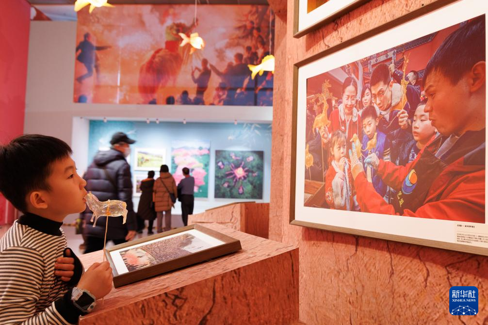 1月26日,在中國非物質文化遺產館舉行的展覽現場,小朋友被一幅攝影作品吸引。新華社記者 金立旺 攝