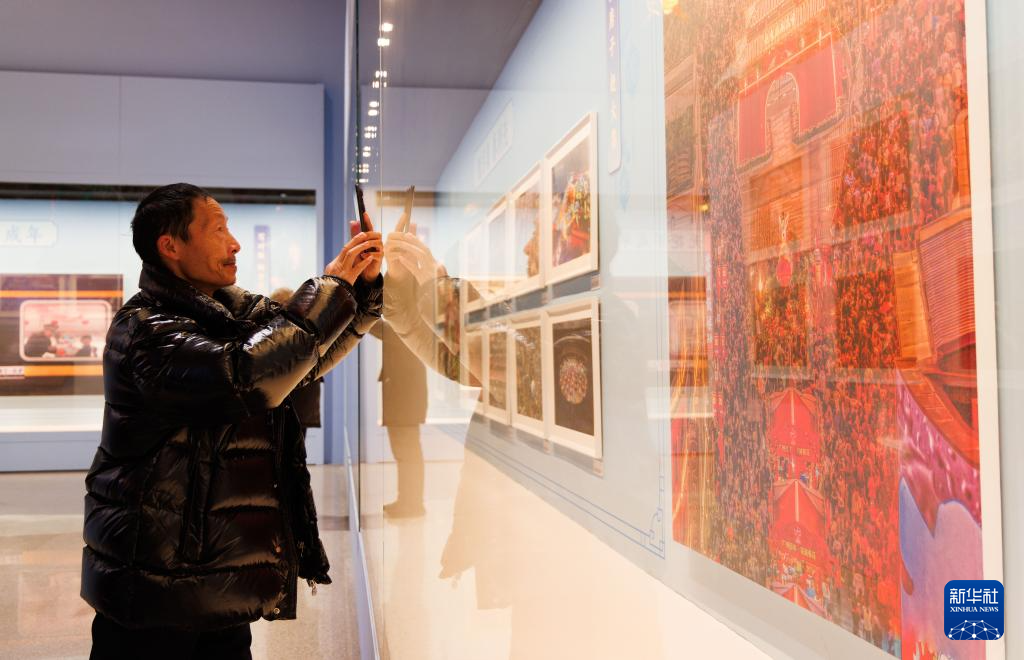 1月26日,在中國非物質文化遺產館舉行的展覽現場,觀眾用手機拍攝展覽作品。新華社記者 金立旺 攝