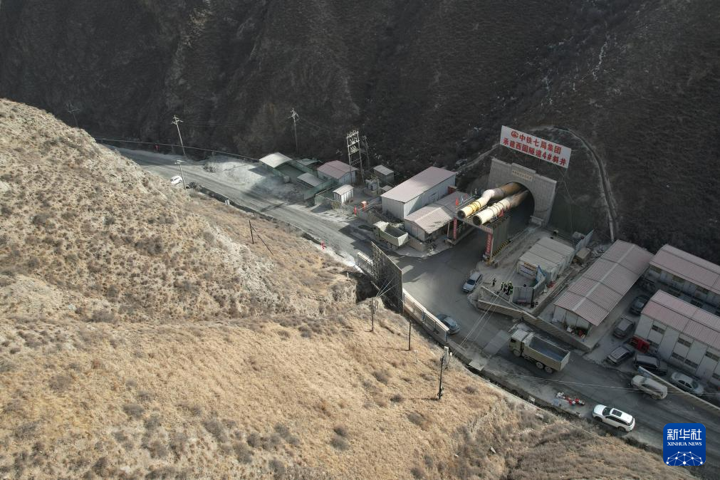 這是1月27日拍攝的蘭合鐵路西固隧道4號斜井口(無人機照片)。新華社記者 陳斌 攝