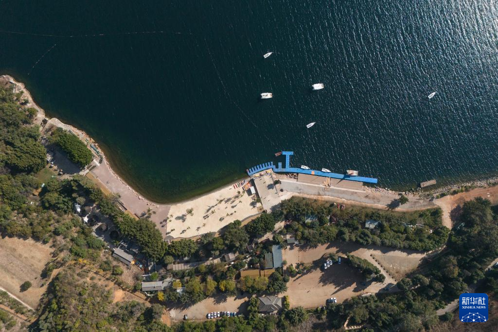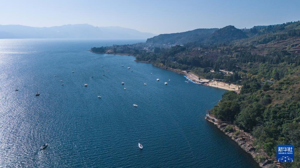 1月27日在云南省玉溪市拍攝的撫仙湖一景(無人機照片)。新華社記者 高詠薇 攝