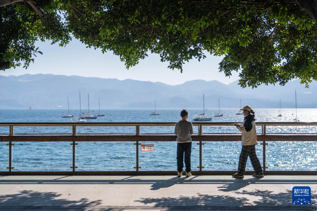 1月27日,游客在云南省玉溪市撫仙湖畔游玩。新華社記者 高詠薇 攝