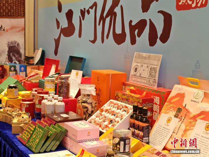 1月23日,江門五邑海外聯誼會第六屆理事大會上展示眾多江門優品。中新社記者 郭軍 攝