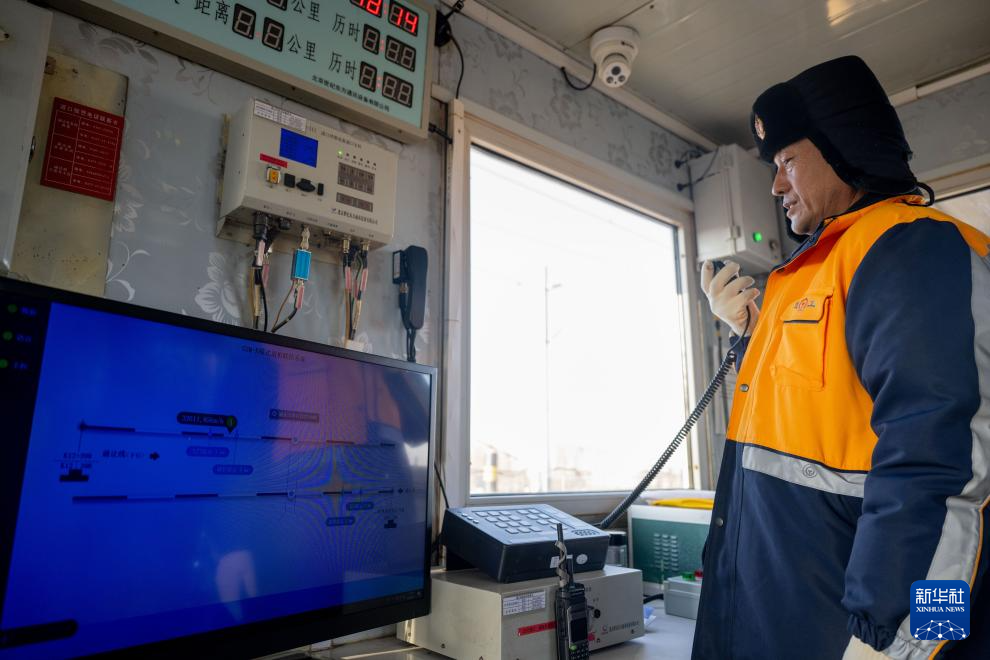 2月1日,徐中成與過往列車通信。新華社記者 連振 攝