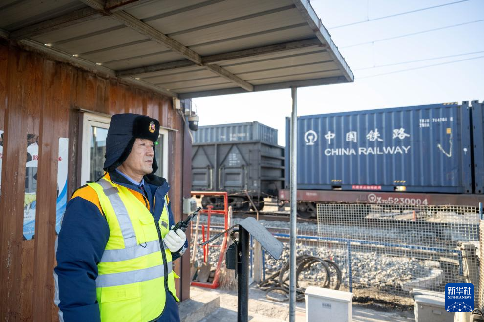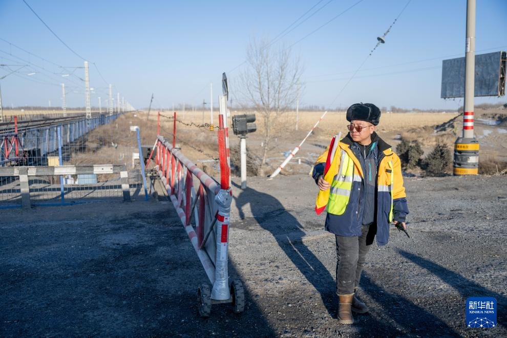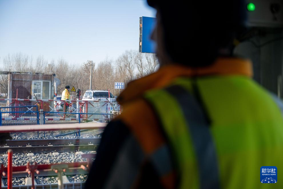 2月1日,工人張浩在道口值班。新華社記者 連振 攝
