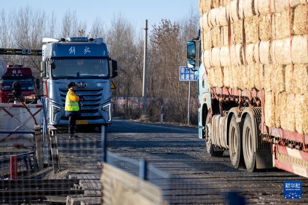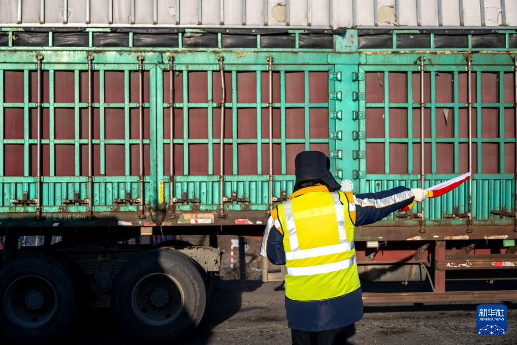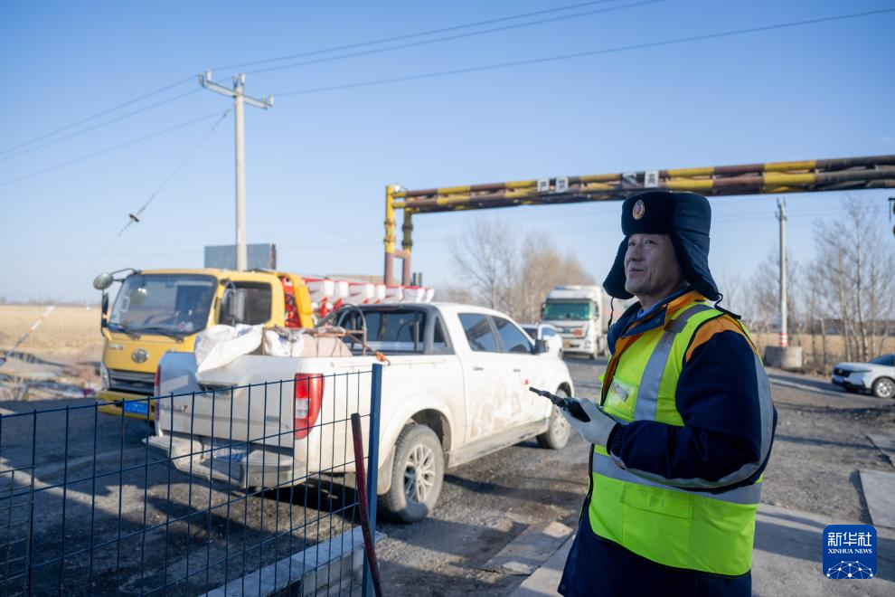2月1日,工人張浩在道口指揮過往車輛通行。新華社記者 連振 攝