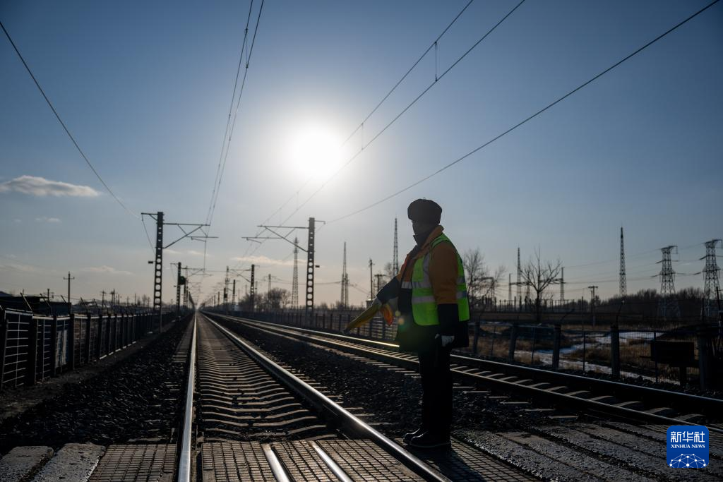 2月1日,工人張浩在列車經過后檢查道口。新華社記者 連振 攝