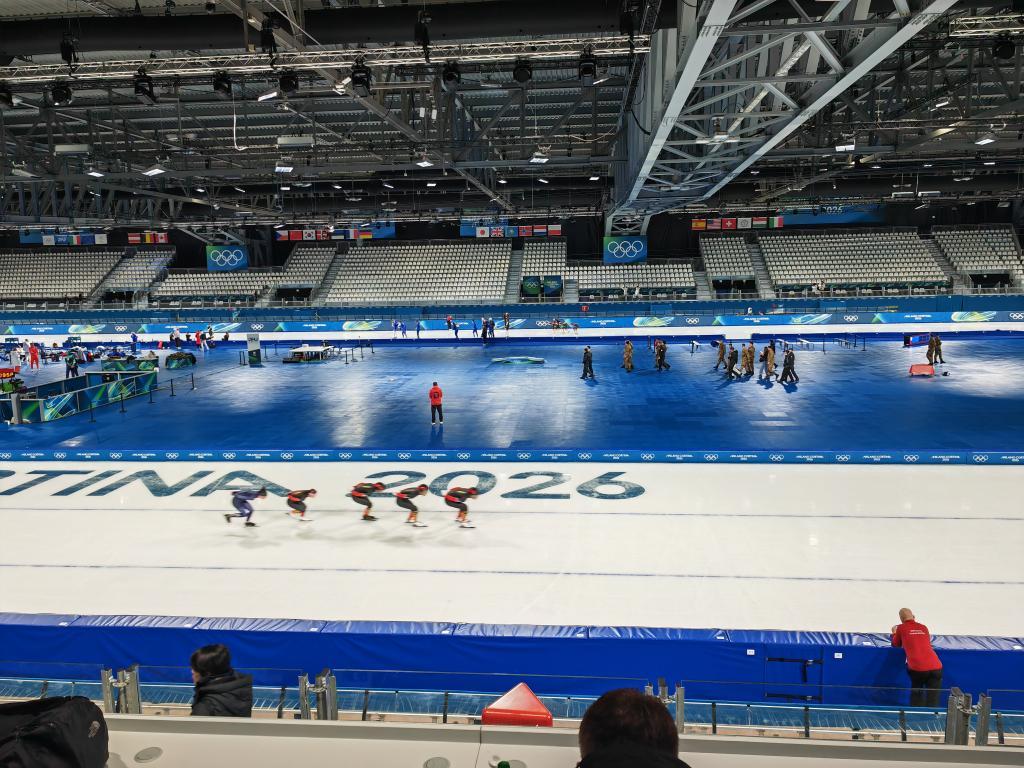 米蘭速滑館是一座在米蘭國際展覽中心內臨時搭建的場館,內部鋪設標準400米冰道,并配備訓練場地和臨時看臺,可容納約6000名觀眾。德威特表示,雖然是臨時設施,但冰場質量不錯。