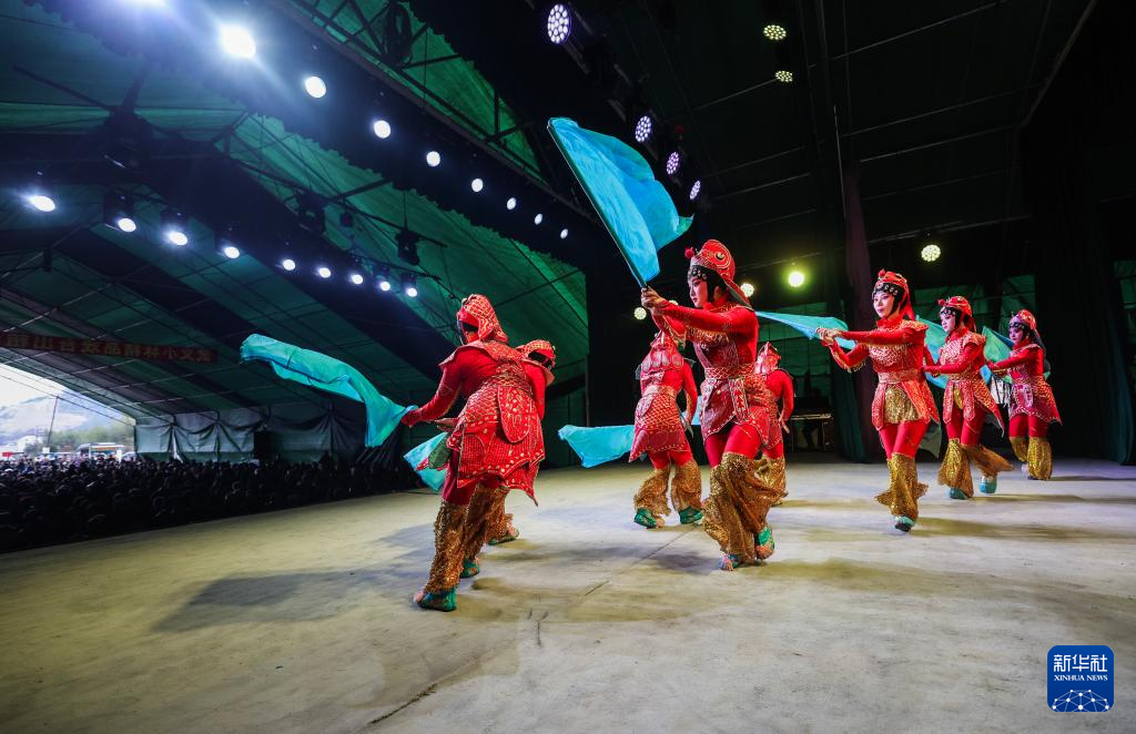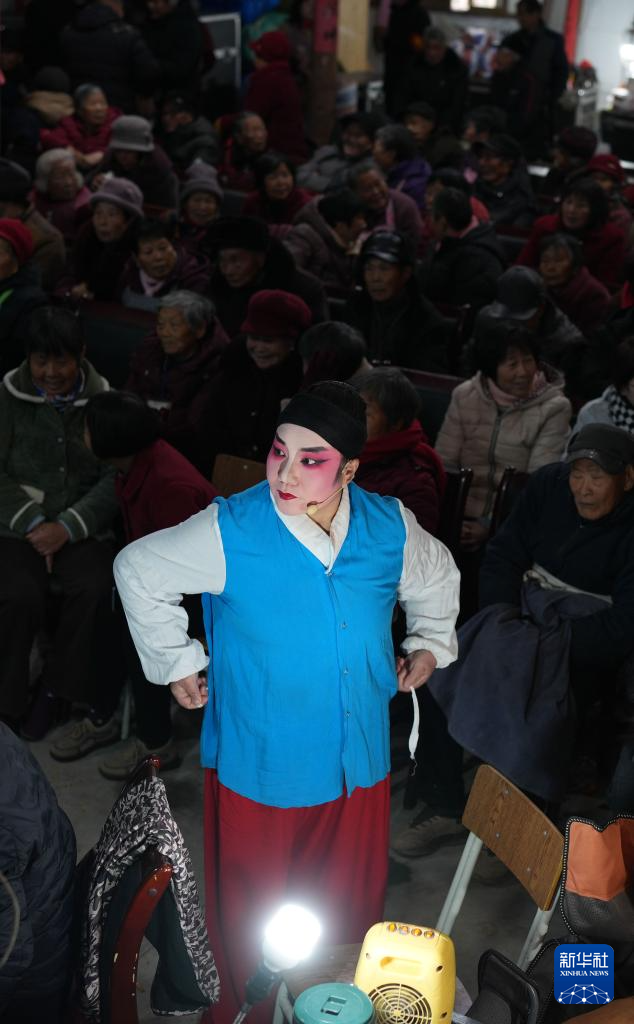 1月29日,建德市婺劇團的演員們在麗水市縉云縣七里鄉梅下村演出。新華社記者 徐昱 攝