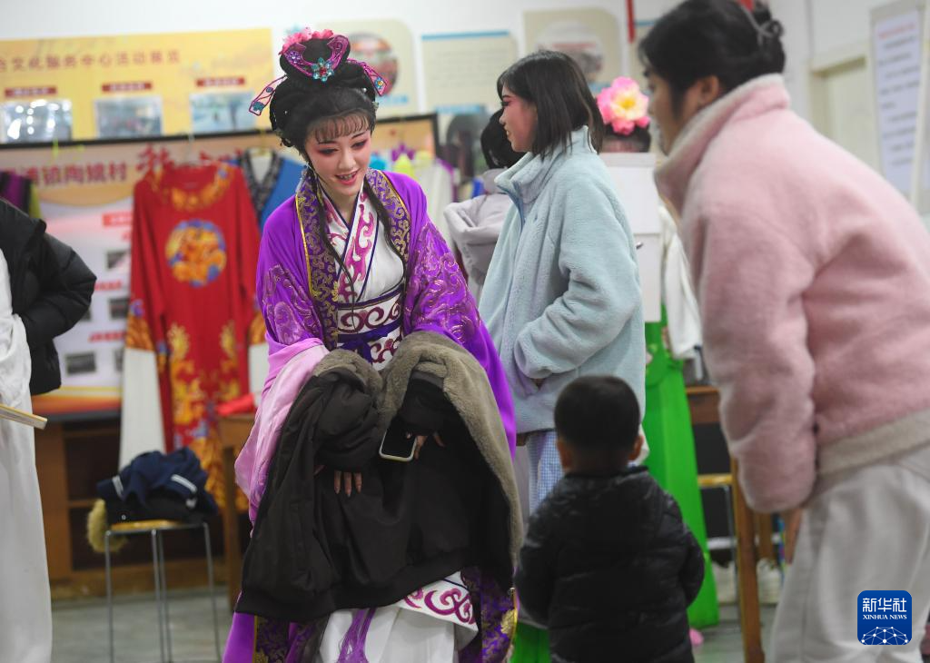1月27日,在金華市婺城區莘畈鄉吳村,九州婺劇團的演員在演出前準備。新華社記者 翁忻旸 攝