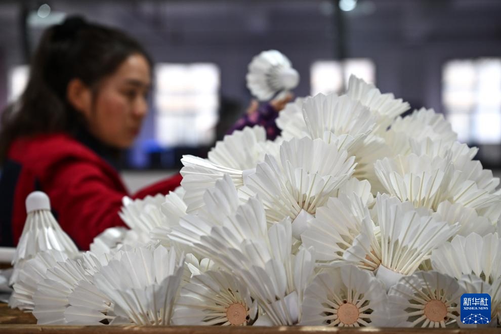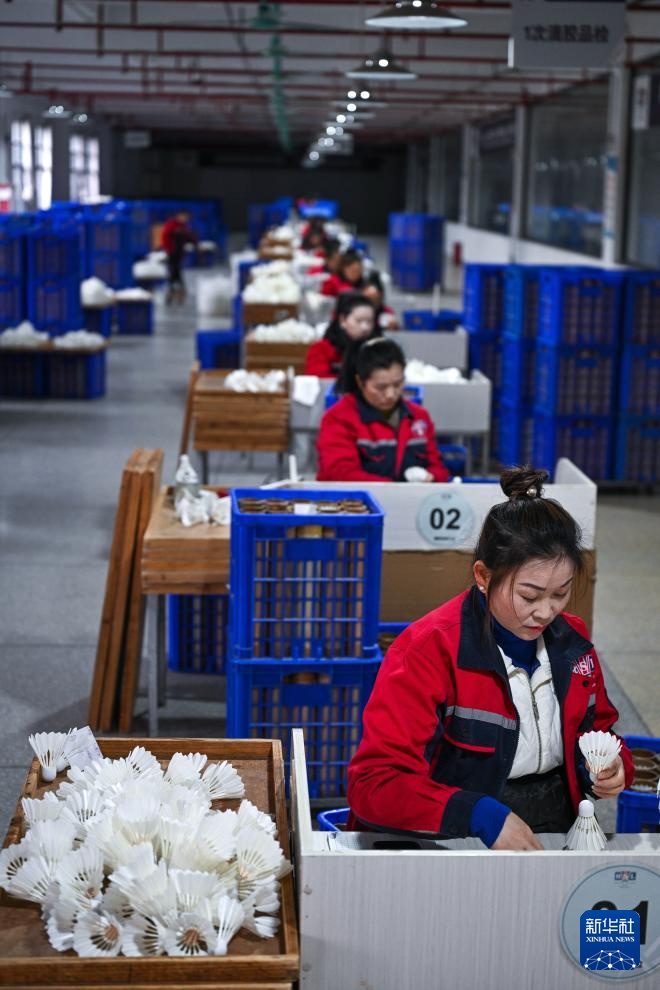 近年來,全縣創新“上游鵝孵化與養殖、中游加工和運動裝備制造、下游體育旅游”的融合發展模式,目前已成功吸引10余家羽毛球運動裝備制造企業集聚,形成了從羽毛球加工到球拍、球筒、球包、球襪等的完整制造集群。