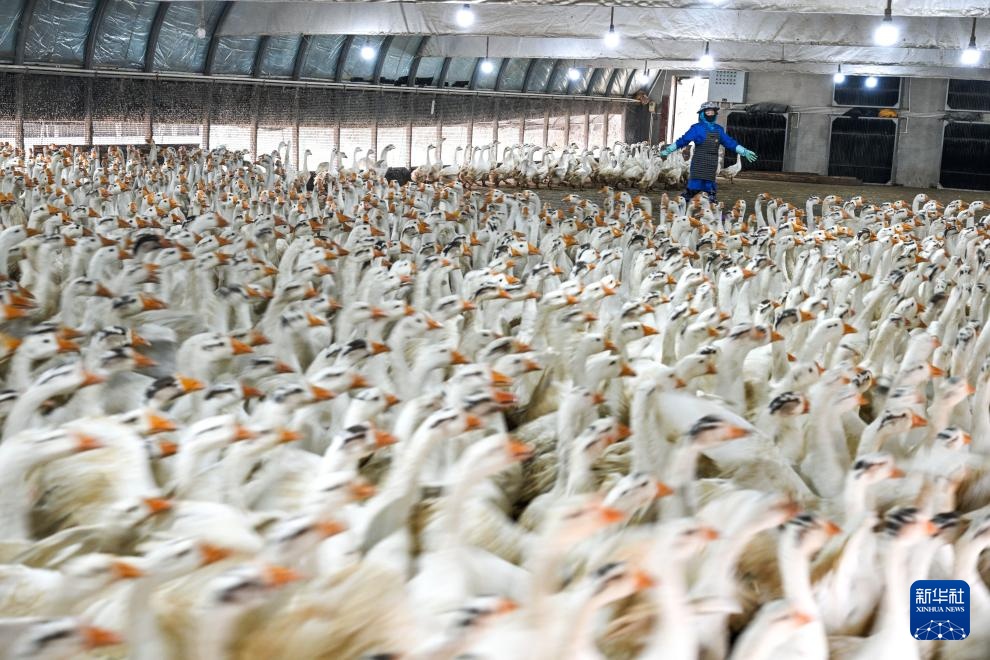 工人在貴州省錦屏縣新化鄉歐陽村的生態鵝育雛基地管理種鵝(2026年1月21日攝)。新華社記者 楊文斌 攝