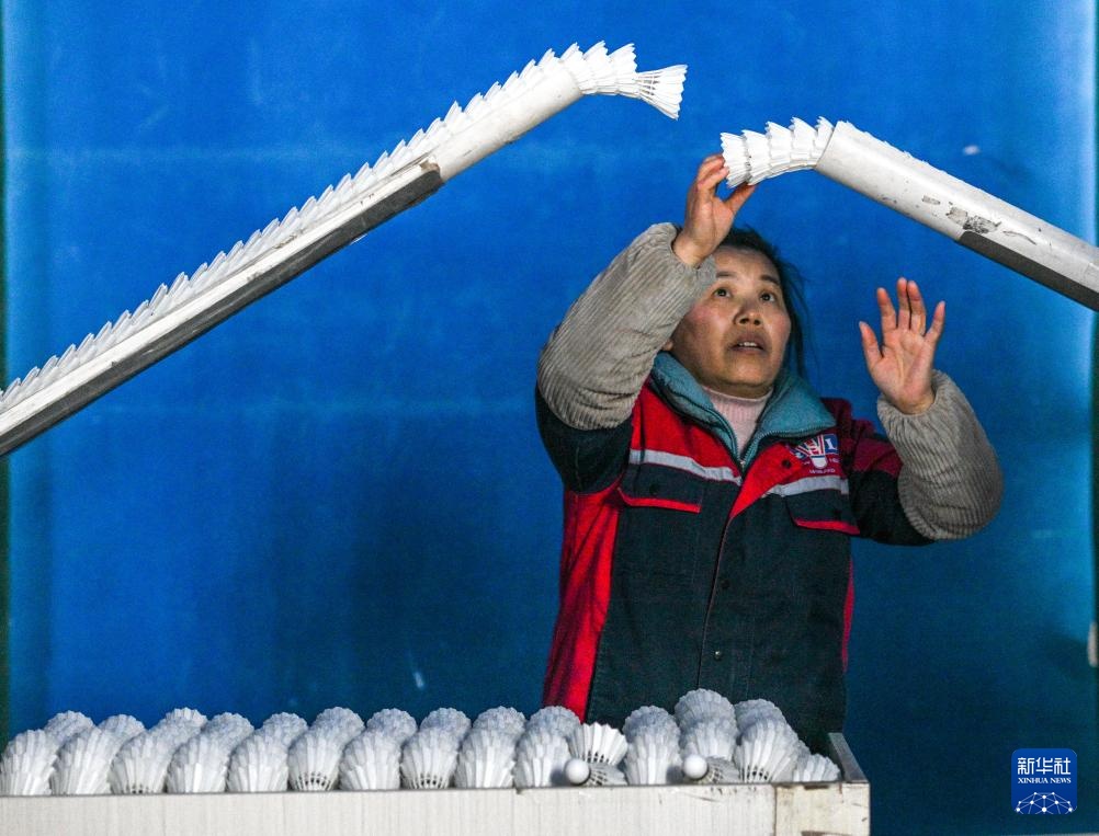 工人在貴州錦屏經濟開發區羽毛球生產基地檢查羽毛球成品(2026年1月22日攝)。新華社記者 楊文斌 攝