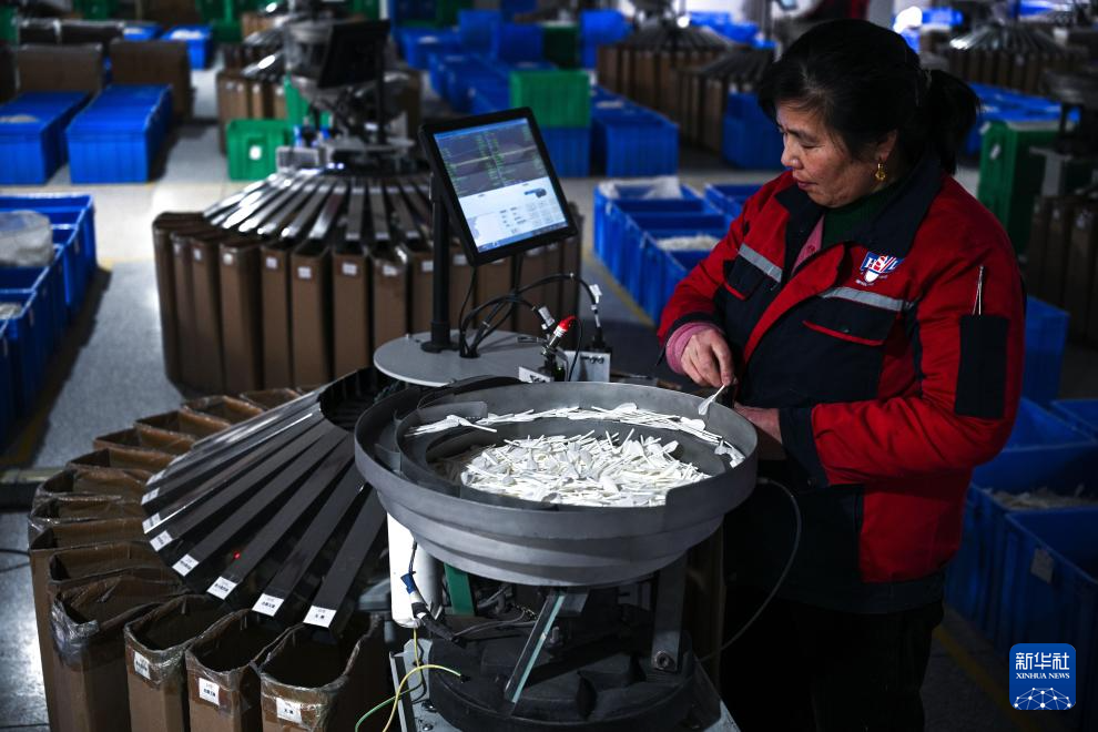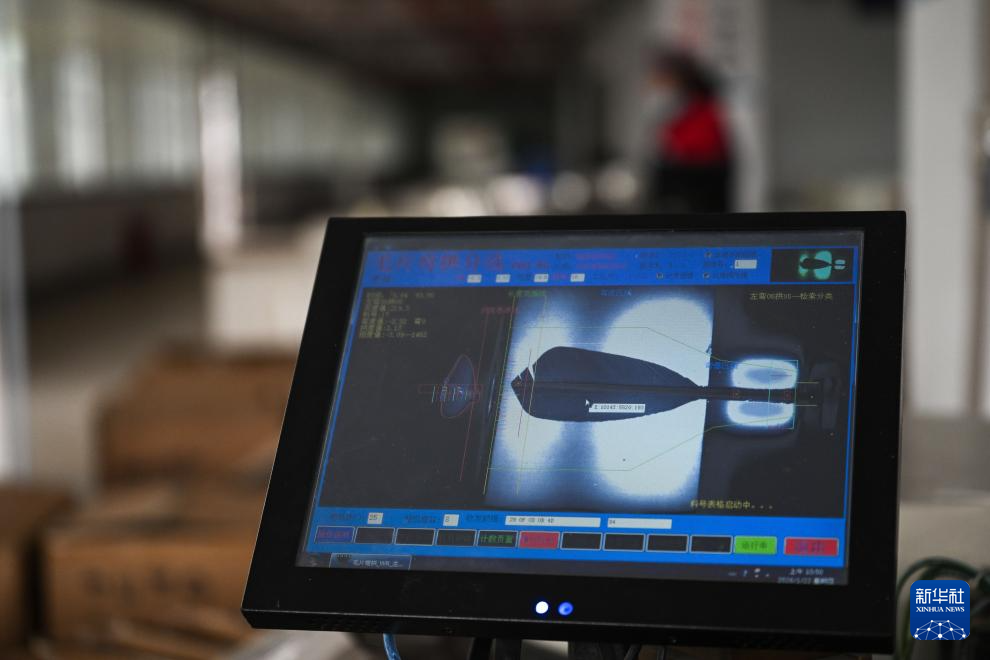 在貴州錦屏經濟開發區羽毛球生產基地,工人操作機器進行毛片彎拱分選(2026年1月22日攝)。新華社記者 楊文斌 攝