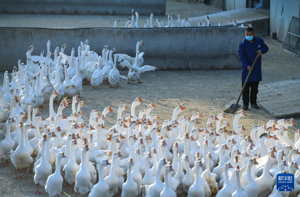 工人在貴州省錦屏縣新化鄉歐陽村的生態鵝育雛基地管理種鵝(2026年1月21日攝)。新華社記者 楊文斌 攝