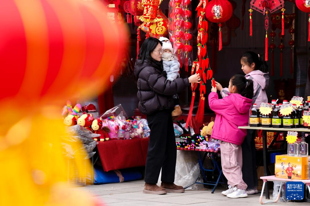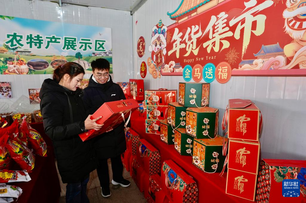 2月3日,游客在寧夏固原市西吉縣年貨大集上選購年貨產(chǎn)品。新華社記者 楊植森 攝