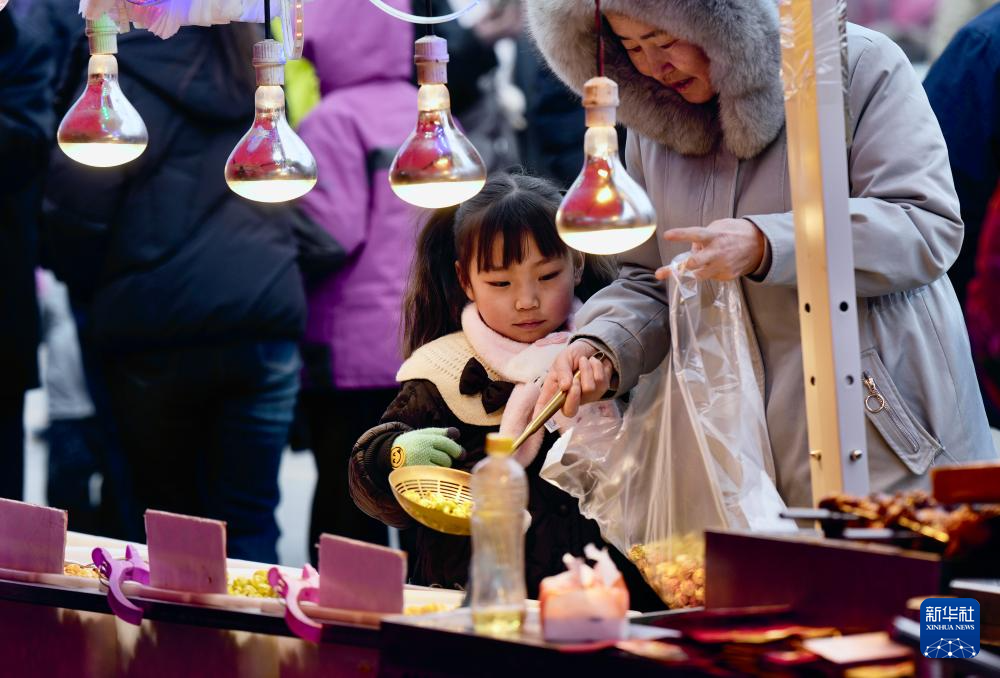 2月3日,游客在寧夏固原市西吉縣年貨大集上選購美食。新華社記者 楊植森 攝