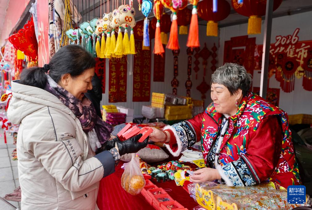 2月3日,游客在寧夏固原市西吉縣年貨大集上選購非遺文創(chuàng)產(chǎn)品。新華社記者 楊植森 攝
