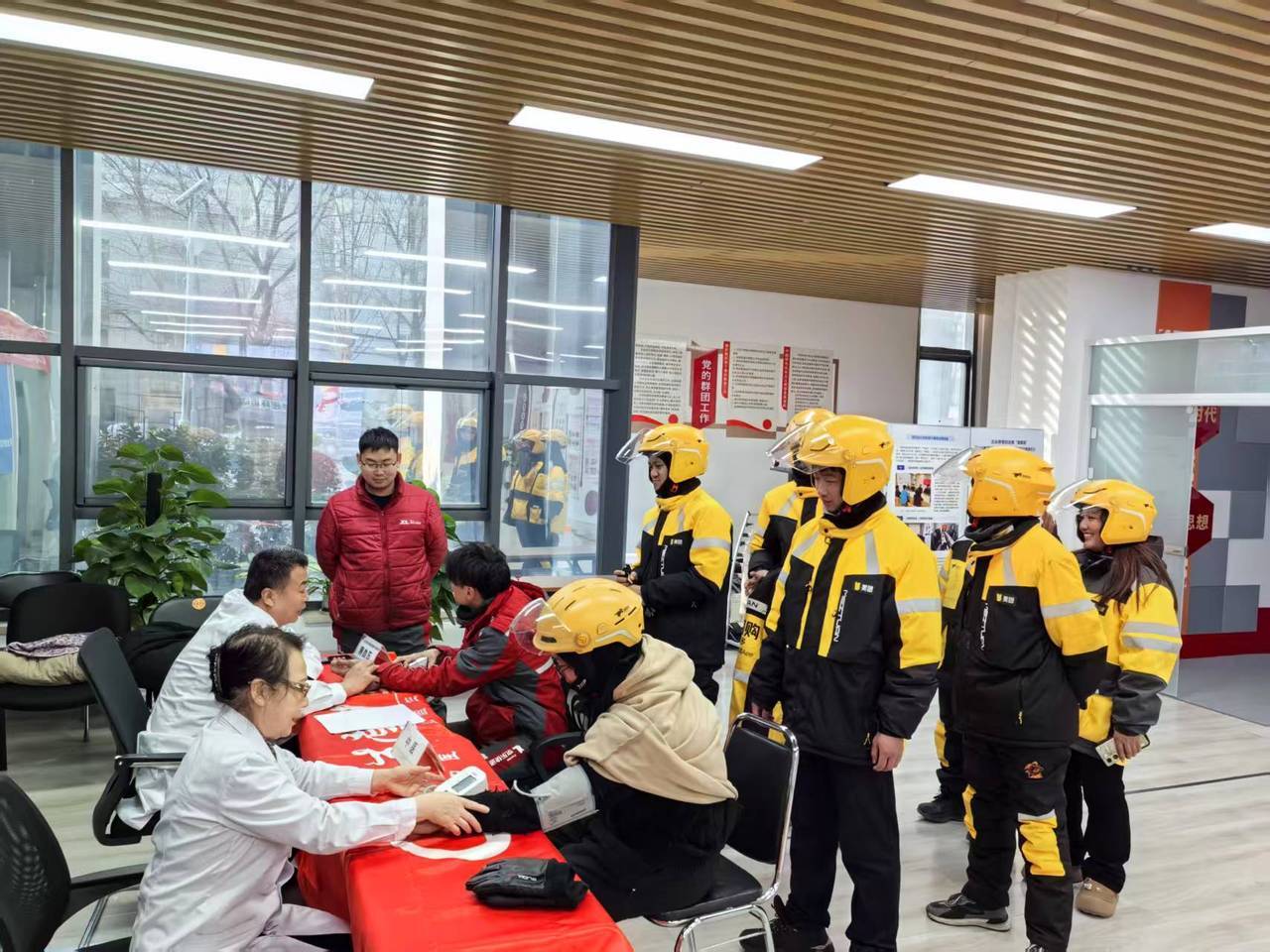 近日,北京市朝陽(yáng)區(qū)醫(yī)療衛(wèi)生工會(huì)所屬職工志愿服務(wù)隊(duì)前往潘家園街道,開展“月末周五”外賣小哥專場(chǎng)健康義診活動(dòng),在寒冷的冬日為外賣小哥送上免費(fèi)健康檢查與健康宣教服務(wù)。