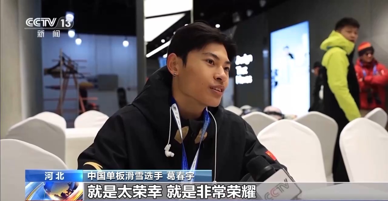 中國單板滑雪選手 葛春宇:我覺得我作為運動員,能參加米蘭奧運會就是太榮幸,就是非常榮耀,所以我就給自己定下目標,我就開始努力地去練習,練習就是訓練,再去創新動作。