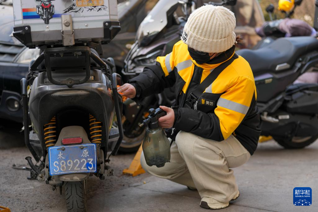 外出配送前,戚德敏清潔電動車(1月29日攝)。新華社記者 楊晨光 攝