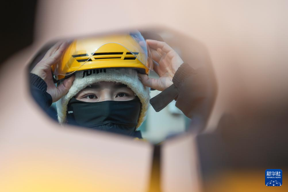 臨近春節,訂單增多,戚德敏和同事們冒著嚴寒,將一份份美食準時送達。成為外賣騎手近兩年,戚德敏的配送總里程已達3萬多公里。工作中,她有過不被理解的委屈,也經常被顧客、商家不經意間的溫暖感動著。戚德敏說,作為一名騎手,她的職責就是守護好一份份被等待的溫暖。