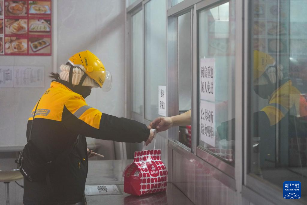 戚德敏在位于山西省太原市小店區的一家商戶內取餐(1月29日攝)。新華社記者 楊晨光 攝
