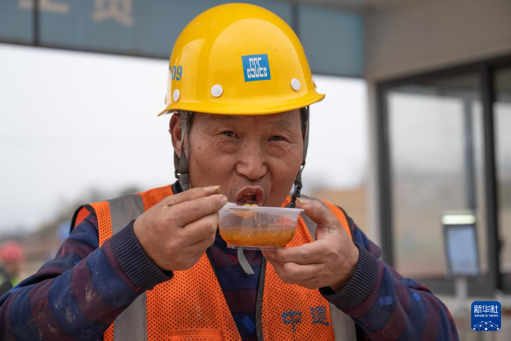 2月5日,在重慶市江津區(qū)重慶樞紐港先進(jìn)機(jī)電裝備和物流產(chǎn)業(yè)園項(xiàng)目建設(shè)現(xiàn)場(chǎng),工人在吃湯圓。新華社記者 陳誠(chéng) 攝