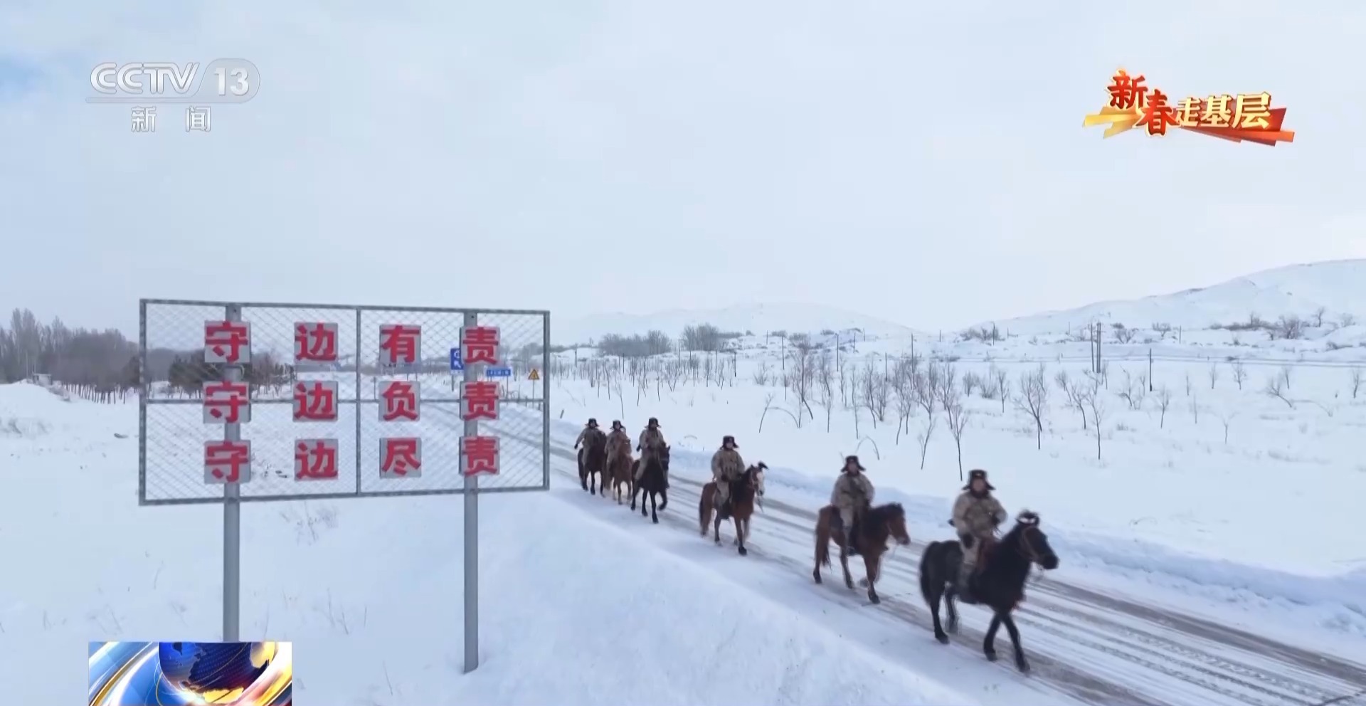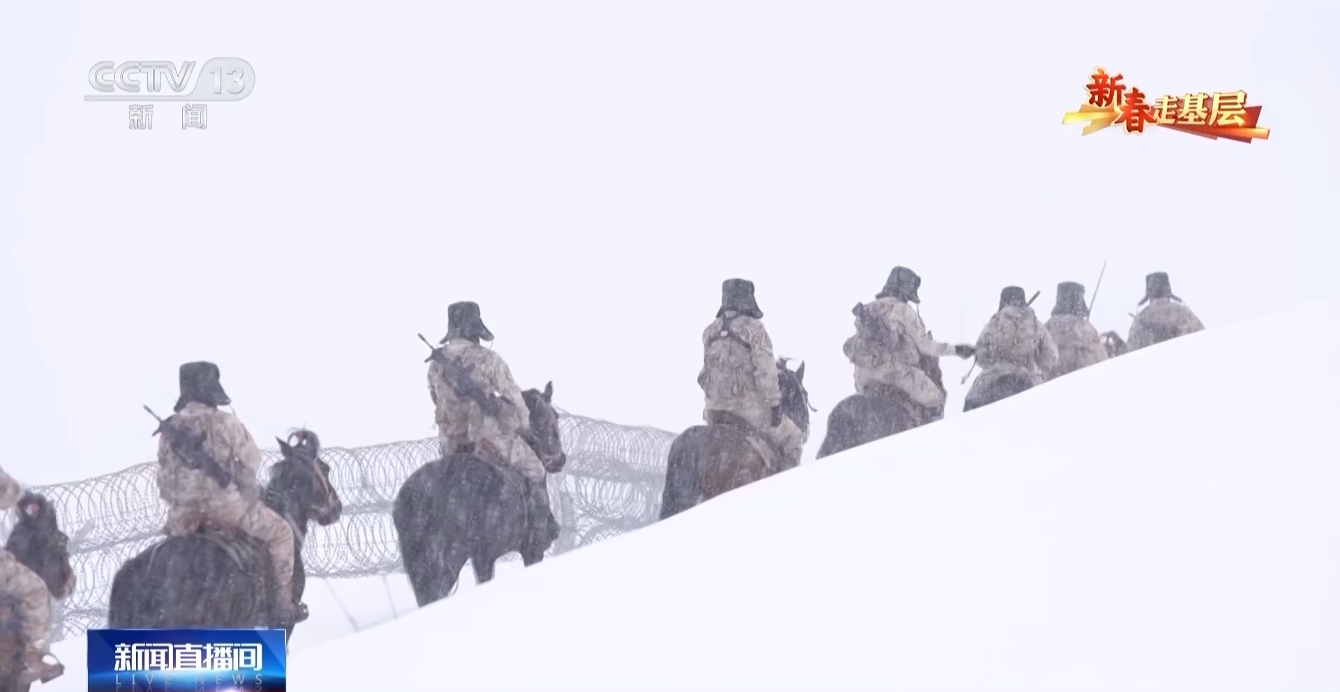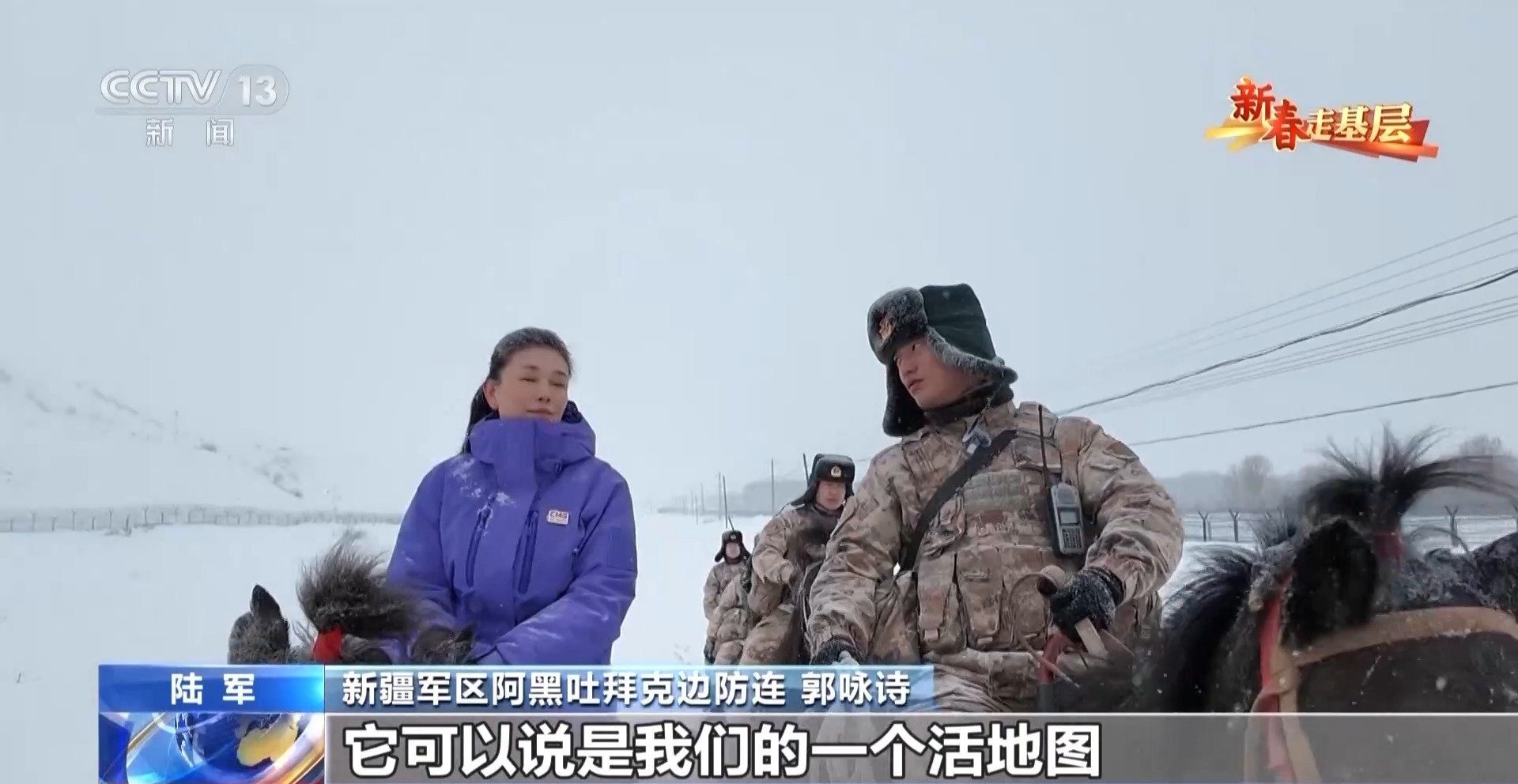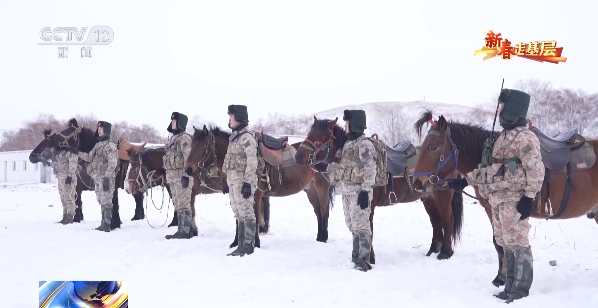 總臺央視記者 劉潔:官兵們正在進(jìn)行騎馬巡邏的準(zhǔn)備,每匹軍馬都系上了鮮艷的紅頭繩,給冬日的邊關(guān)帶來了暖暖的年味。這些軍馬是官兵們巡邏途中最親密的戰(zhàn)友,今天他們再一次踏上邊防巡邏路,用堅守迎接新春。