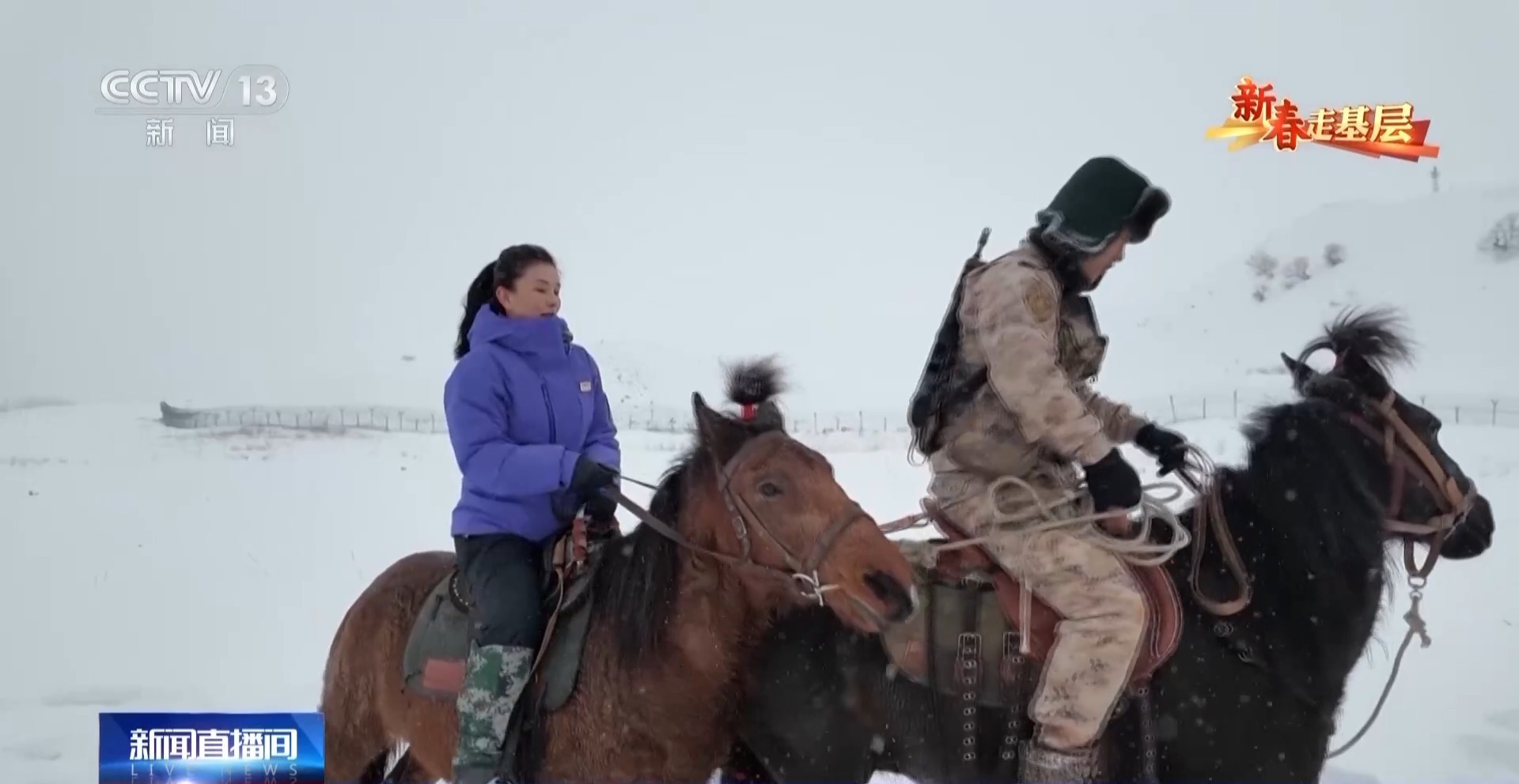 總臺央視記者 劉潔:第一次騎上馬背,比想象的要高很多,而且顛簸得厲害,心里很緊張。雙腿要時刻夾緊,雙手要攥韁繩,才能在雪地上保持平穩(wěn)。僅僅是跟隨隊伍緩行,不一會兒就會覺得腰腿酸軟。可想而知,官兵們長年累月在復(fù)雜的地形中騎行巡邏,需要多么過硬的本領(lǐng)和毅力。