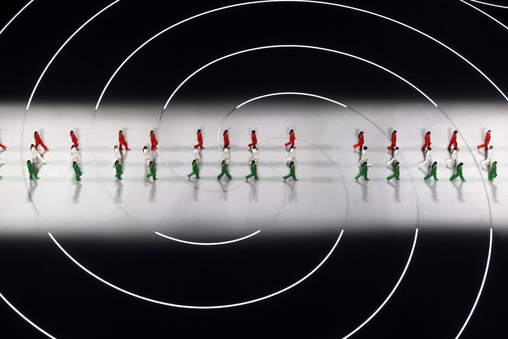 這是一屆格外“遼闊”的冬奧會,四個賽區、八個場地,賽區間平均距離超過250公里。也正因如此,本屆開幕式史無前例地在米蘭和科爾蒂納設置了兩座主火炬臺,并在開幕式上同時點燃。此外,為免去運動員們的舟車勞頓,開幕式在四個賽區同時舉行了入場儀式。