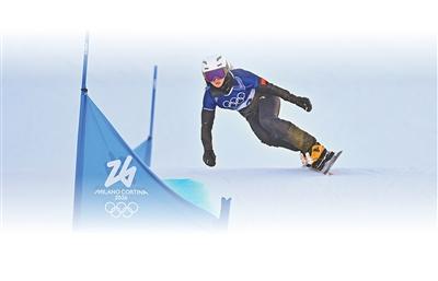 中國隊選手畢野在單板滑雪男子平行大回轉預賽中。新華社記者 胡超攝