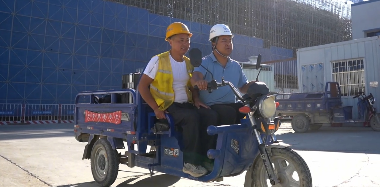 “工友村”設在工地內部,工人進出必須穿過一段900多米的施工現場道路。臨近年關,看著工友們扛著大包小包、步行一步一挪地往外走,劉小龍看在心里,不是滋味。他向項目工會主動申請了一輛三輪車,得到了項目工會的支持。每天,他安排時間,喊上剛好下班的同事幫忙,騎著三輪車往返于施工大門和生活區之間,一趟又一趟幫工友運送行李。他說:“工友們不容易,能幫一點是一點。這也是我們央企該有的溫度。”