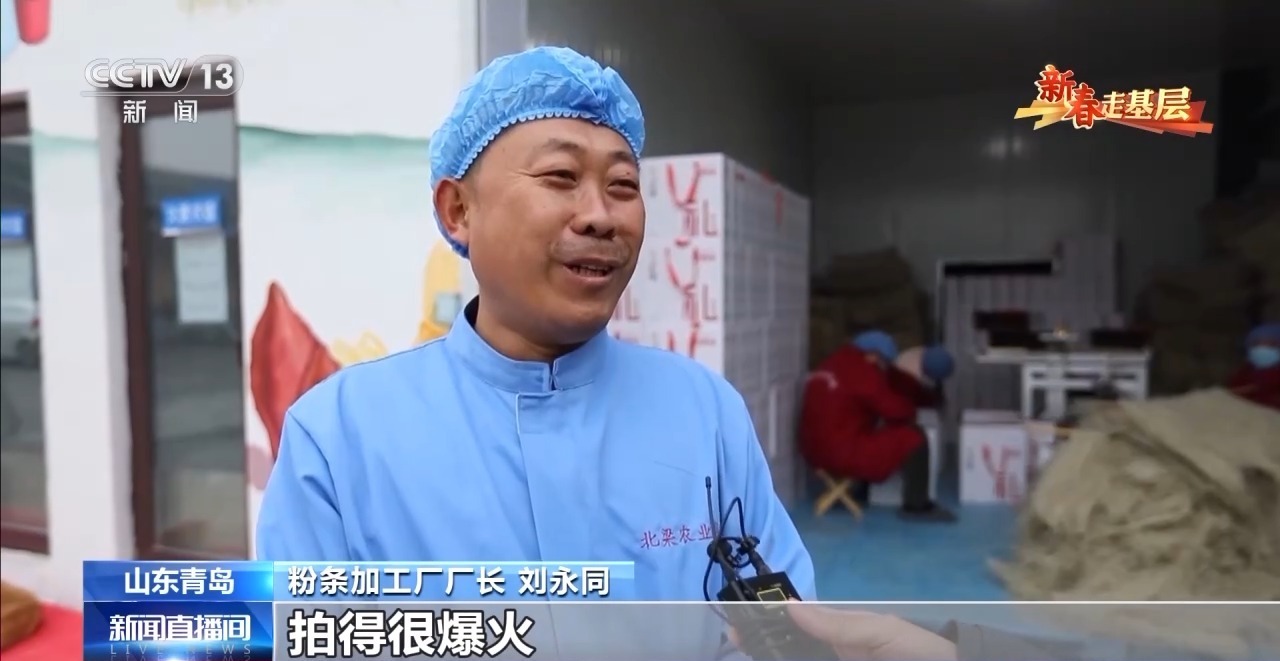 粉條加工廠廠長 劉永同:在網上看到他們拍這個短視頻,拍得很爆火,所以我們就想過來看一下,結果來了以后發現這邊農產品很豐富,所以說我們就有了想法建廠。