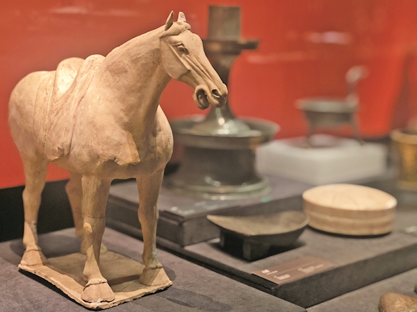 中國考古博物館近日上新了出土于河南偃師杏園唐墓的駿馬入藏基本陳列。這匹駿馬形象膘肥體壯四肢強健有力,頸部微微前傾眉脊突起,其動感十足鮮活生動的形象直觀反映著千年前唐人的審美意趣。中國文化報記者 連曉芳 攝