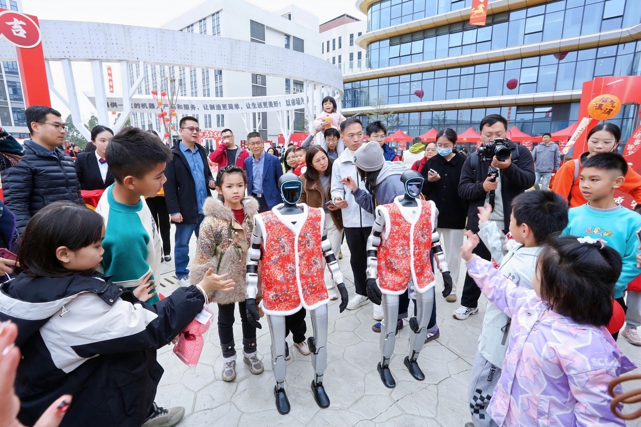 活動(dòng)現(xiàn)場,兩臺身形靈巧的人形機(jī)器人穩(wěn)穩(wěn)遞出喜慶紅圍巾,將新春的暖意精準(zhǔn)送到每位嘉賓與職工手中;另一臺智能機(jī)器人則與職工們來了一場跨越時(shí)空的奇妙對話,一旁的機(jī)械臂、無人機(jī)等,更引得現(xiàn)場職工紛紛駐足。更有機(jī)器人在晚會上與職工同臺獻(xiàn)舞,讓職工近距離感受科技帶來的生活變化。