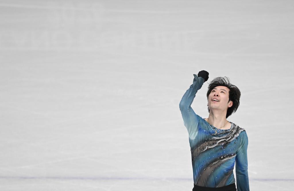 北京冬奧會亞軍、日本名將鍵山優(yōu)真在跳躍中出現(xiàn)失誤,表現(xiàn)略有瑕疵,以103.07分位居次席。法國選手蕭傳文排名第三。