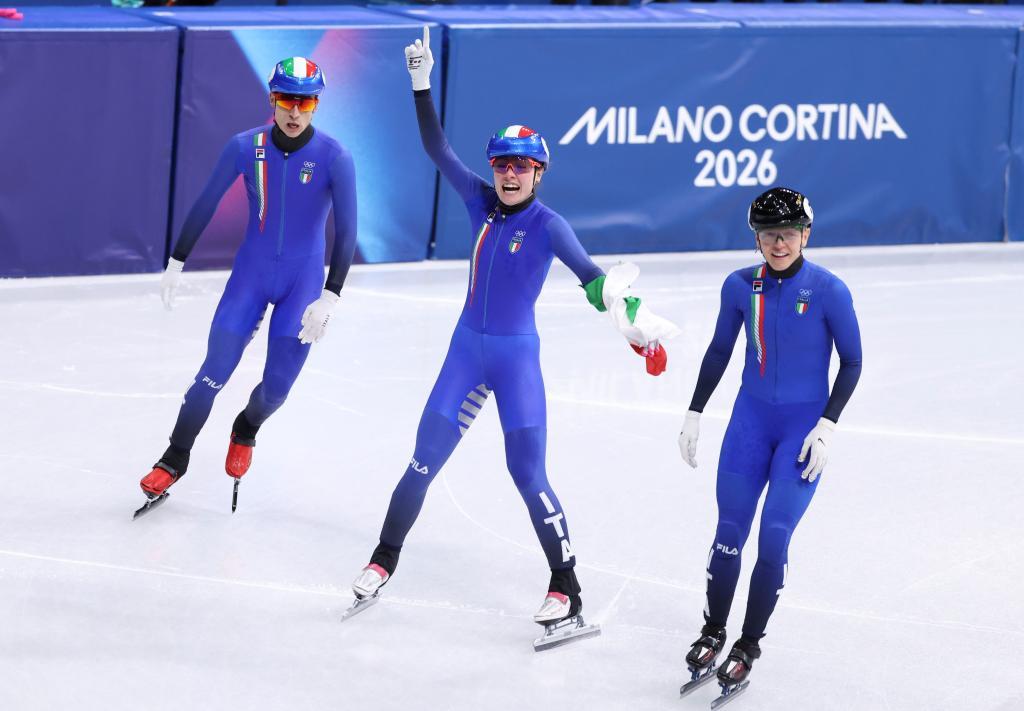 當日是短道速滑開賽首日,東道主隊斗志昂揚,在2000米混合接力四分之一決賽、半決賽中發揮出色。決賽中,面對衛冕冠軍中國隊和傳統強隊加拿大隊,意大利隊毫不畏懼,在一度處于領滑位置的中國隊略顯猶豫時實現超越,以2分39秒019的成績摘得金牌。