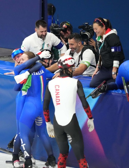 新華社米蘭2月10日電(記者李嘉、王鏡宇)當東道主意大利隊在10日的米蘭冬奧會短道速滑賽場奪得2000米混合接力冠軍時,現場沸騰了。冰場邊慶祝的人群中,有一張中國面孔格外醒目——她眼含熱淚,高喊著“Italia,brava!(意大利,太棒了!)”,在冰面旁挨個擁抱隊員。