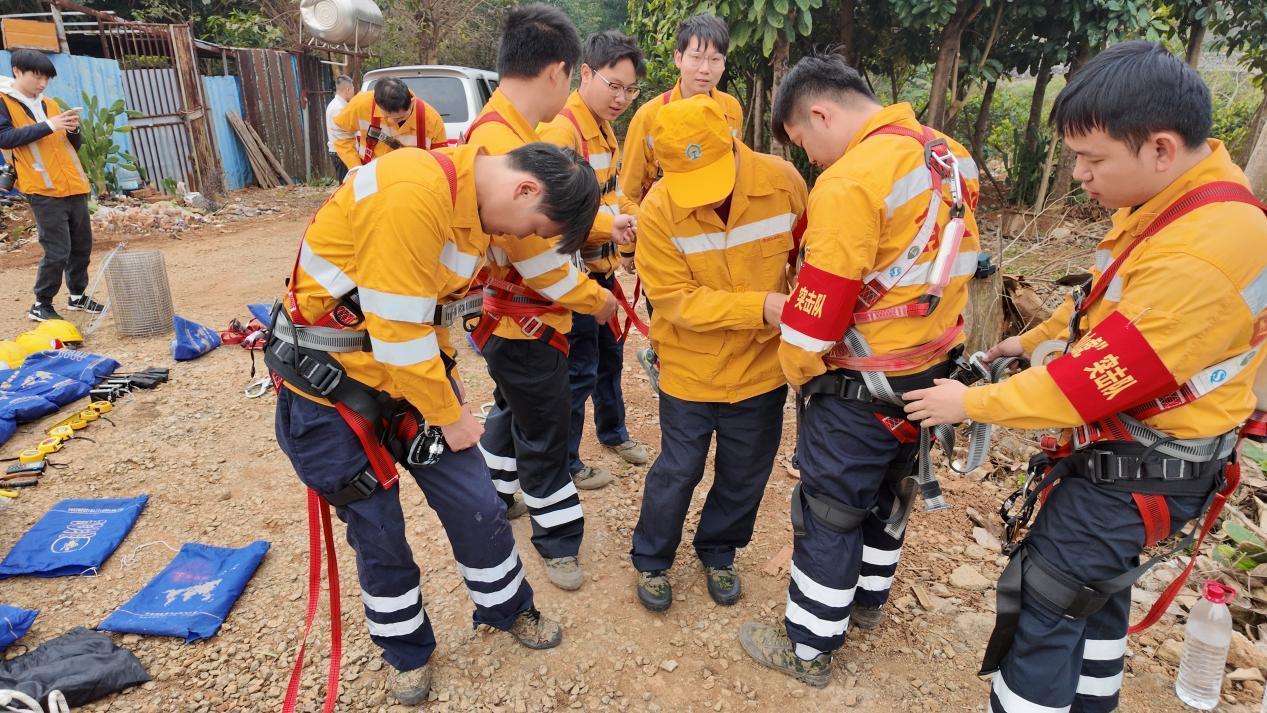 “爬山虎”突擊隊隊員穿戴安全繩和安全帽