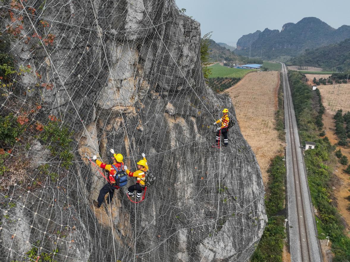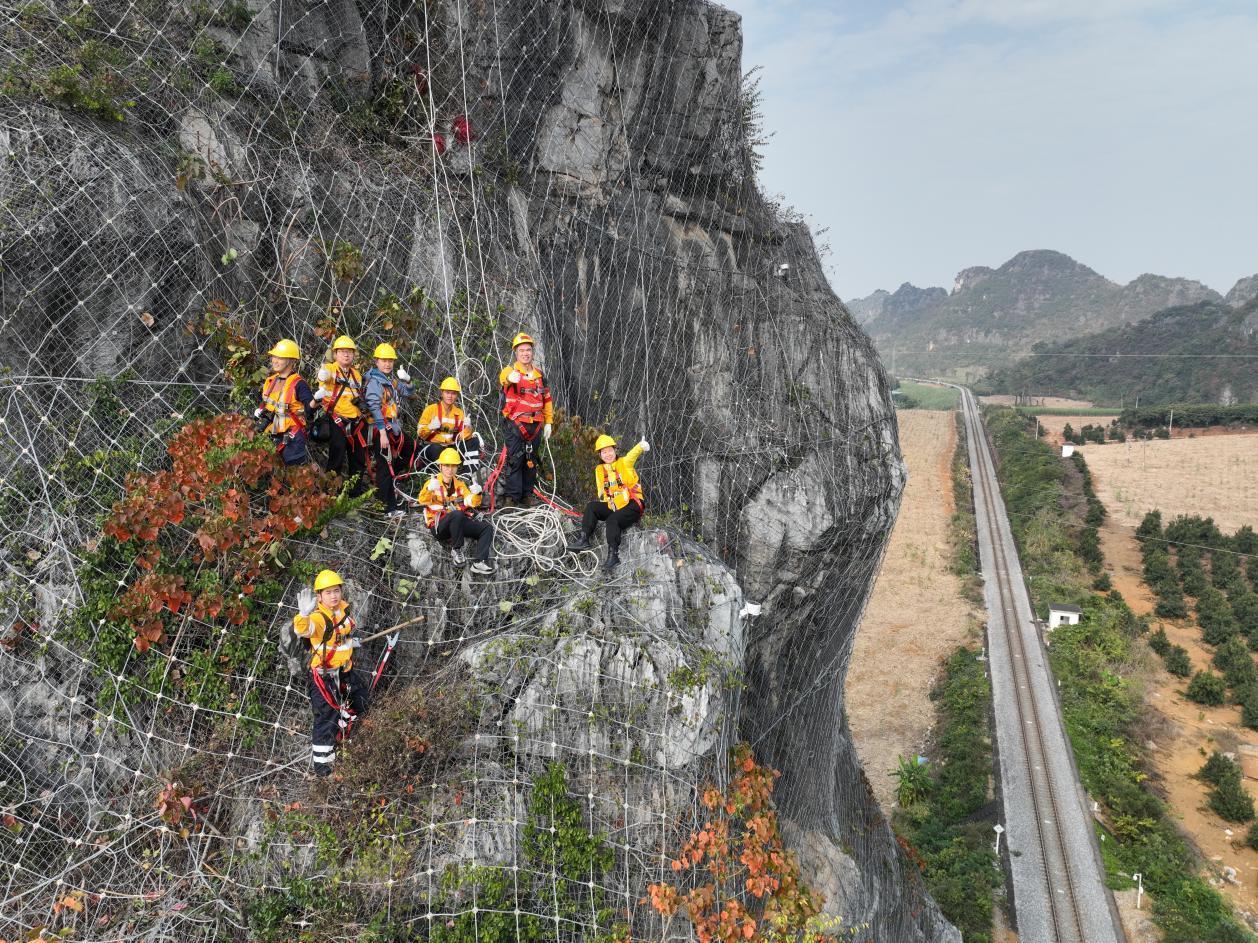 湘桂鐵路南憑段是中越國際鐵路通道,是中越班列、中越國際聯運客車通往越南的必經之路。鐵路沿線石山林立,山高巖陡,是典型的喀斯特地貌。春運期間,更多跨國班列從這里經過,沿線隱患排查整治也更繁忙。
