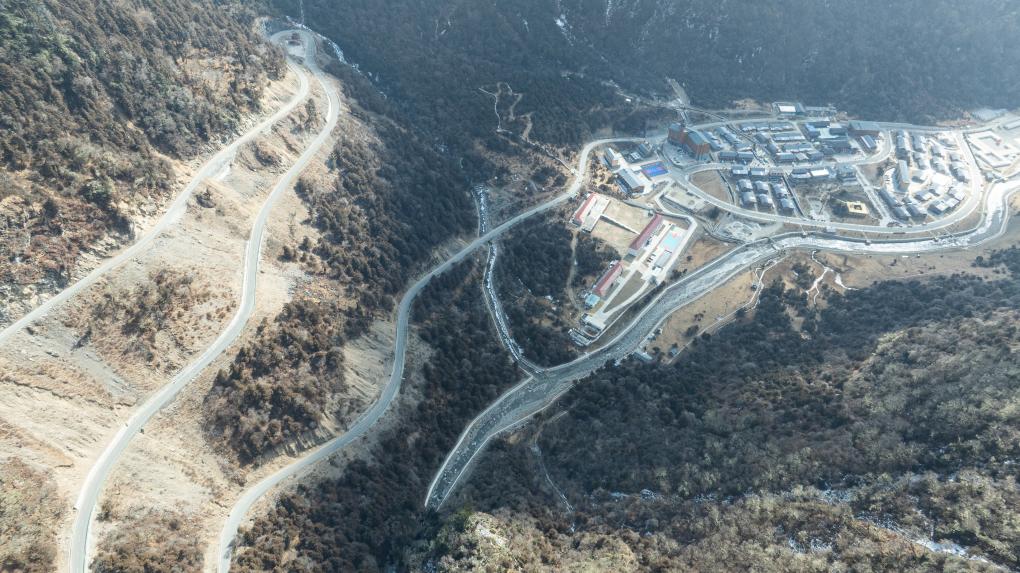 這是2月5日拍攝的玉麥鄉及周邊公路(無人機照片)。新華社記者 丁增尼達 攝