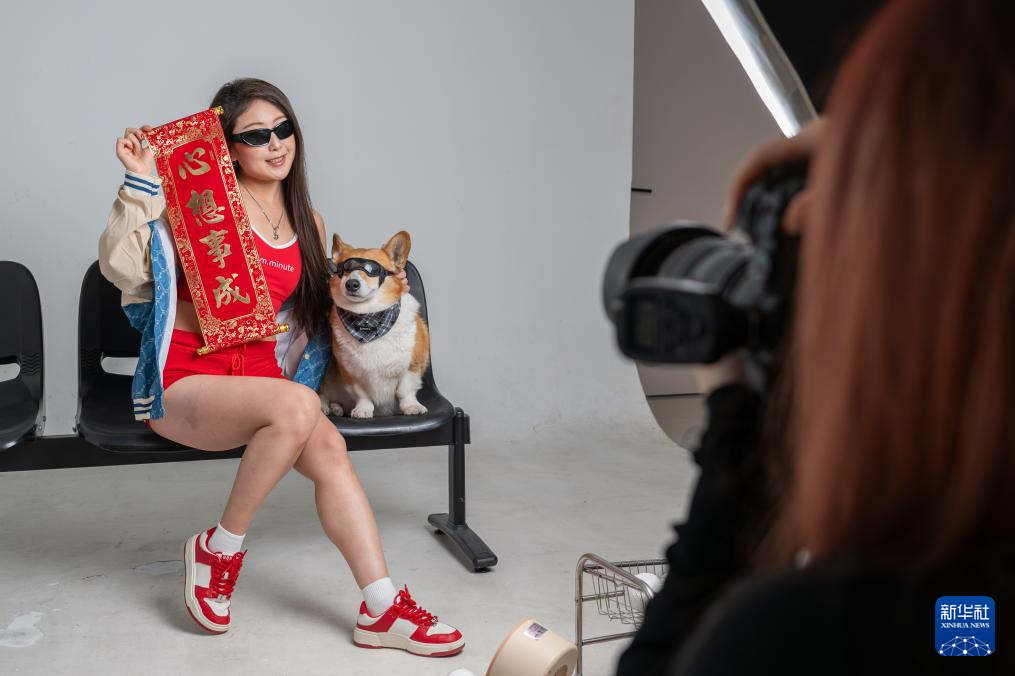 隨著春節臨近,給“毛孩子”拍新年寫真成為又一消費熱潮,“毛孩子”過年也要有儀式感。在武漢一家寵物寫真店,攜寵拍寫真的客人絡繹不絕,除攝影外,店內還提供寵物洗澡、美容等服務。寵物攝影將情感消費推向新高度。
