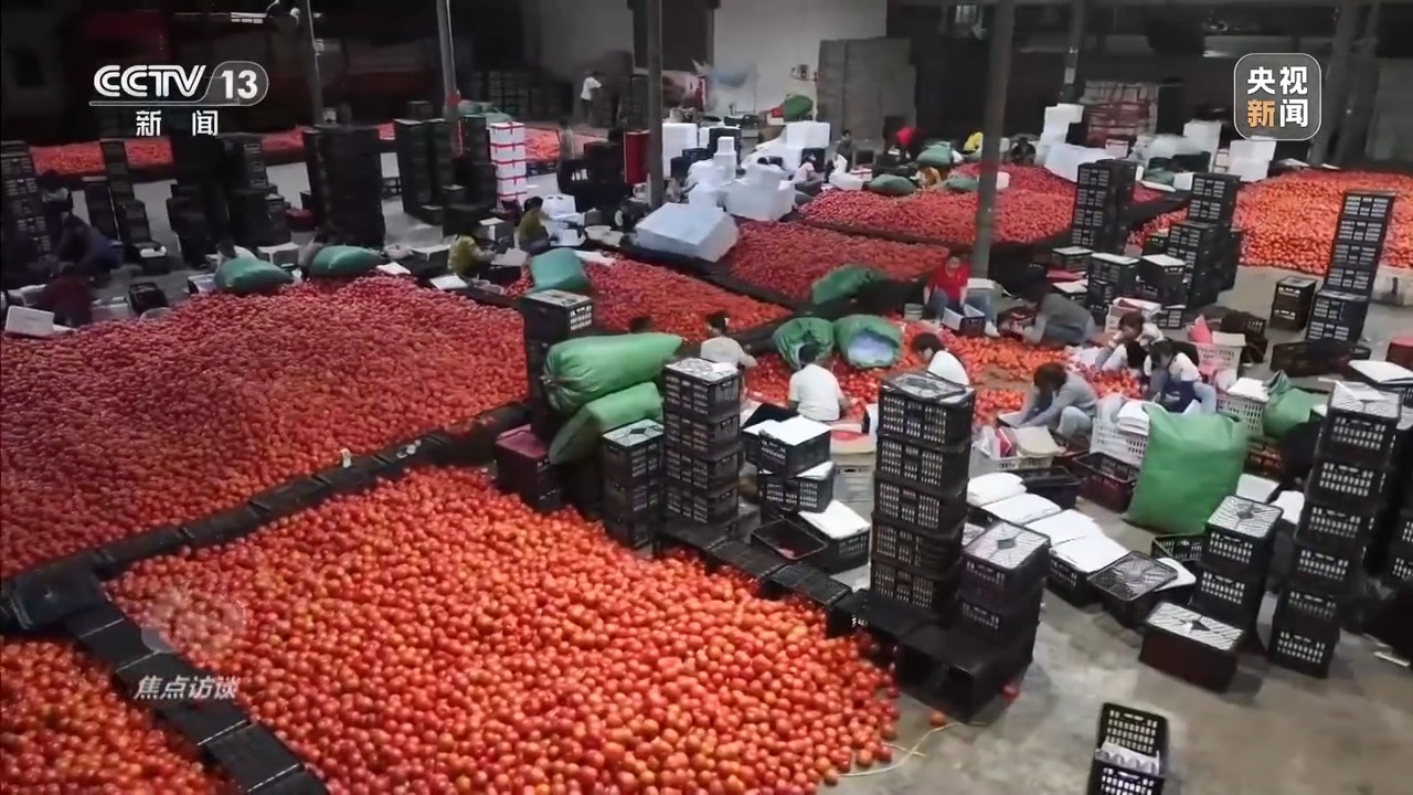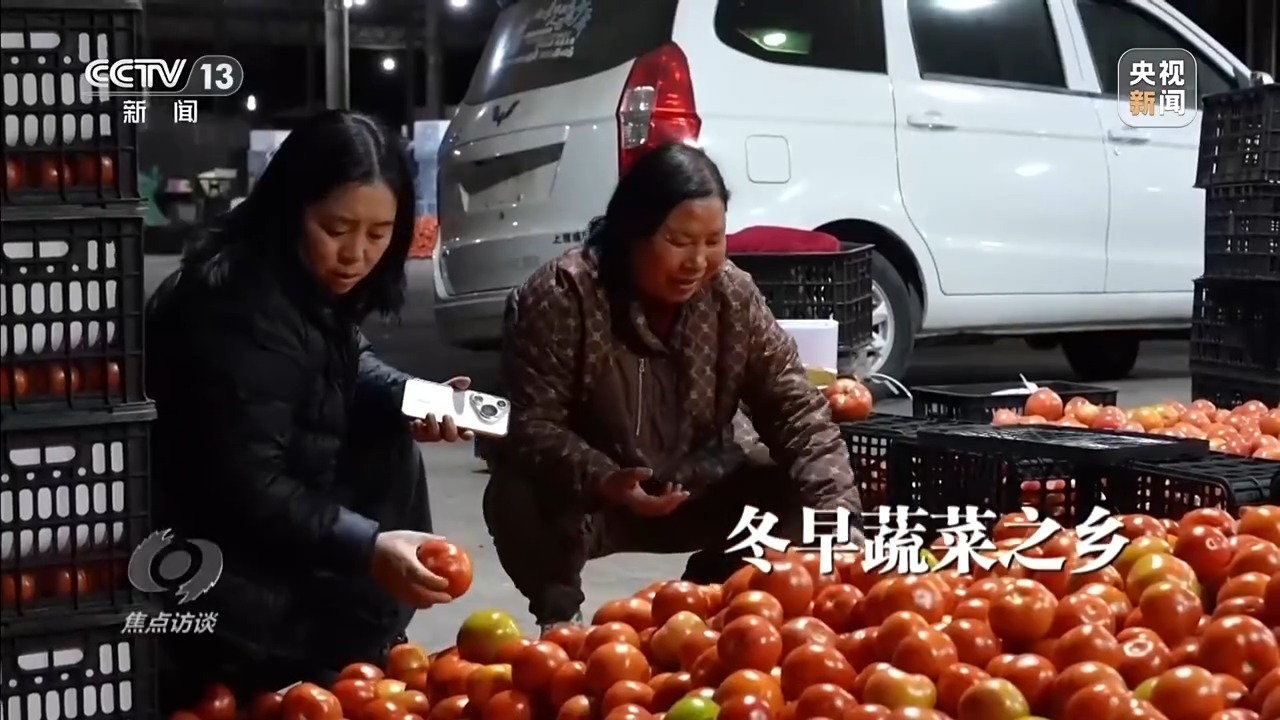 云南楚雄彝族自治州的元謀縣,位于滇中高原北部,是著名的蔬菜種植大縣。憑借得天獨厚的氣候優(yōu)勢,這里成為冬日里的“天然菜園”。每到冬天,西紅柿、黃瓜、豆角等新鮮蔬菜在這里集中上市,其中西紅柿是當?shù)胤N植面積最廣、交易量最大的當家品種。元謀縣的能禹蔬菜批發(fā)市場,則是這些新鮮西紅柿的核心集散地。這里日夜繁忙,見證著一顆顆的元謀西紅柿從田間走向全國。新春走基層,記者就來到了能禹市場,從這里出發(fā),探訪元謀“南菜北運”背后一個個鮮活的奮斗身影。