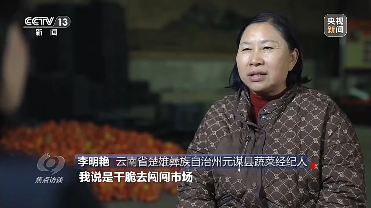 云南省楚雄彝族自治州元謀縣蔬菜經紀人 李明艷:因為我們祖祖輩輩都是農民,看著爸爸媽媽把菜種出來了,賣又賣不到好價錢,我說干脆去闖闖市場。